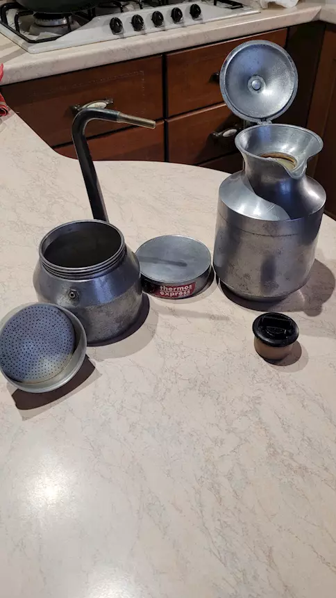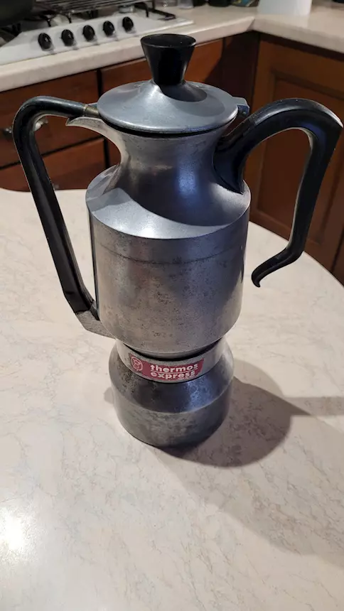 Vendo caffettiera vintage Thermo Express La Signora completa di tutti i pezzi (filtri, guarnizione e tappo). Da esposizione, non noto il funzionamento.