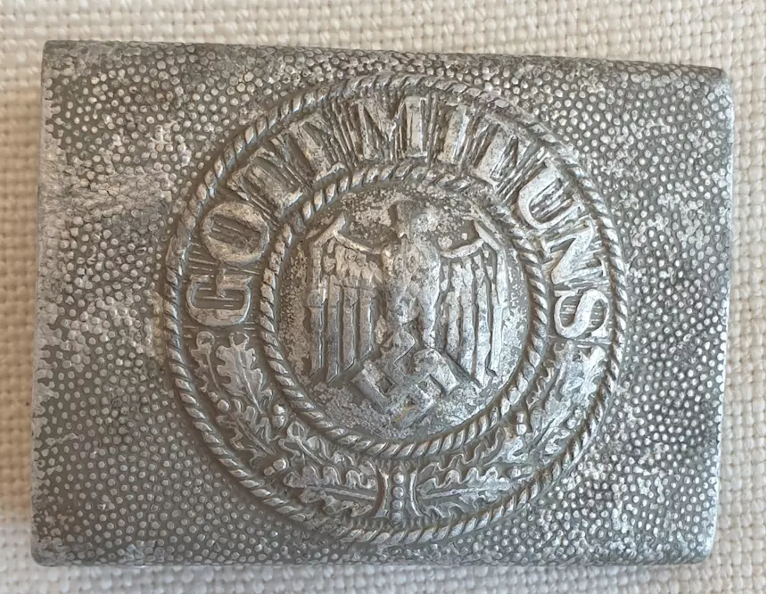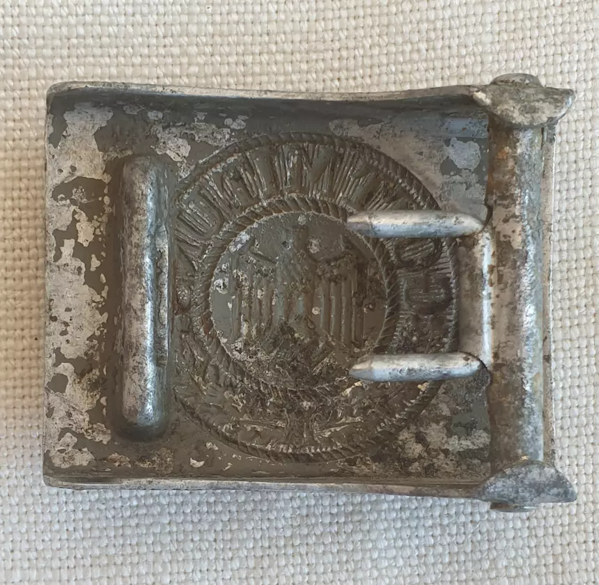 Cinturone completo originale Wehrmacht, fibbia in alluminio marcata dal fabbricante. Cinturone di cuoio spesso in eccellenti condizioni, nessun punto lasciato o mancante. Tre buchi praticati a una delle estremità. Fibbia in buone condizioni, il tubino non ruota ma si aggancia perfettamente al cuoio.