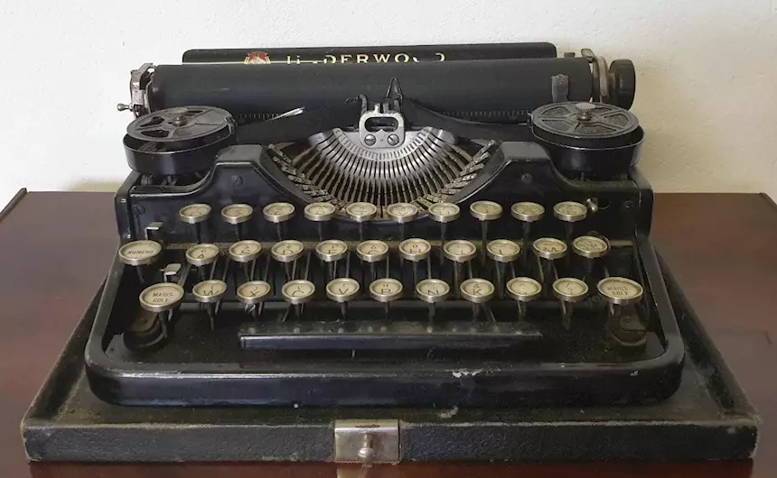 Macchina da scrivere 'Underwood' portatile anni 1920 in buono stato di conservazione