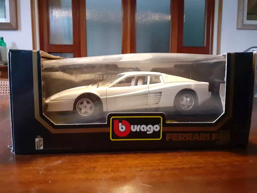 Vendo tre modellini Ferrari scala 1/18 F40 e Testarossa Bburago la GTO Polistil (1/16) i modelli sono integri mai usciti dalla teca di cartone sono lì da oltre trent'anni unico difetto il trasparente facilmente ripristinabile la Testarossa bianca è quella dei mondiali del 1990 gli adesivi sono stati rimossi da me all'epoca dell'acquisto e riposta in un box della F40 Chiedo 120€ per tutte e tre vendita solo in blocco eventuali spese di spedizione sono a carico dell'acquirente Grazie