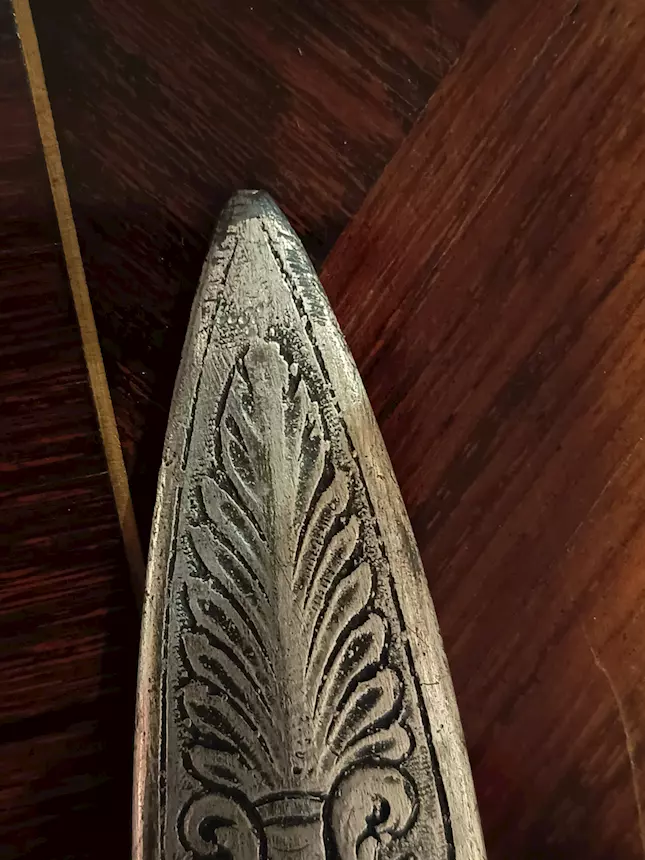 Lama piatta decorata con arabeschi.